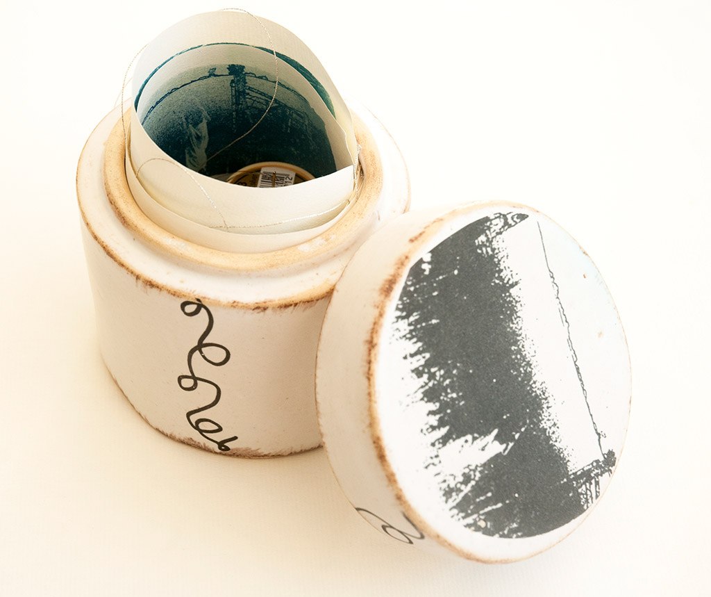 En este proyecto, presento un conjunto de objetos, cajas de recuerdos, realizadas en cerámica y gráfica, con aplicación de calcos serigráficos. En su interior, contienen imágenes que nos invitan a imaginar historias. Propongo un recorrido, siguiendo el hilo de Ariadna, un viaje en el cual, cada uno, enlace sus propios recuerdos y, así se reconstruya la memoria colectiva.